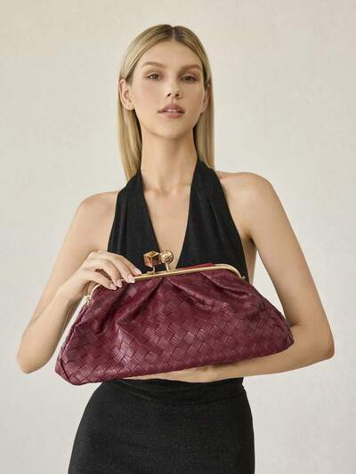 BOLSO DE MANO DE MUJER DE PU TEJIDO CON RELIEVE, HERRAJES FINOS