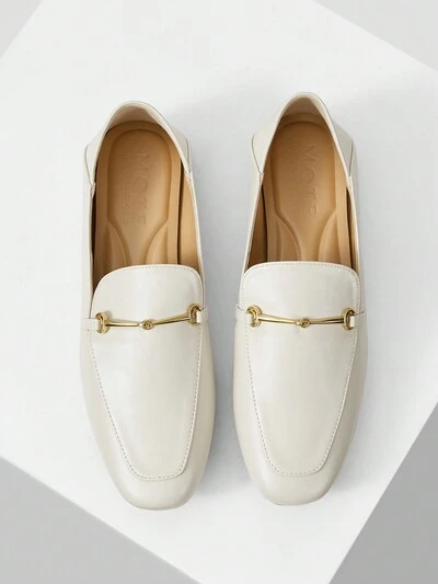 SANDALIAS PLANAS DE CUERO DE PU CON PUNTA CUADRADA CÓMODAS PARA USO DIARIO PARA MUJERES