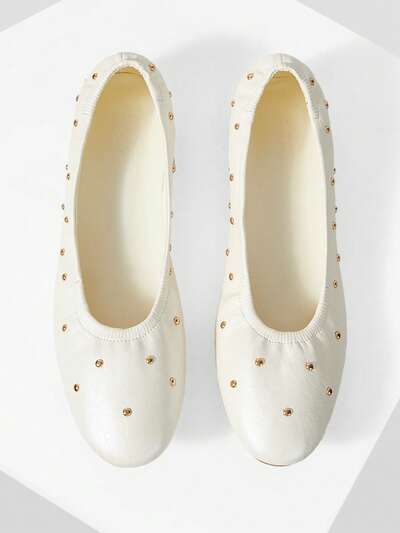 Zapatos de mujer de estilo retro francés de alta calidad, de piel de PU con remaches, pliegues y punta redonda, suela plana, color blanco, versátiles, elegantes, de fácil deslizamiento, ligeros, antideslizantes y de moda sencilla