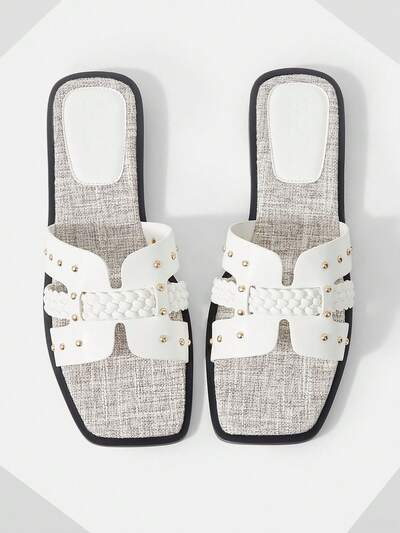 Sandalias planas de verano con decoración de remaches, estilo casual y de calle para uso diario, zapatos de primavera para mujer