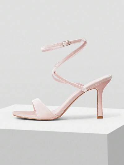 SANDALIAS DE TACÓN ALTO ROSADAS CON TIRAS ATRACTIVAS, VERSÁTILES Y SIMPLES PARA MUJER PARA FIESTA