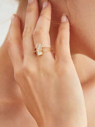 Anillo abierto minimalista personalizado chapado en oro de 18K