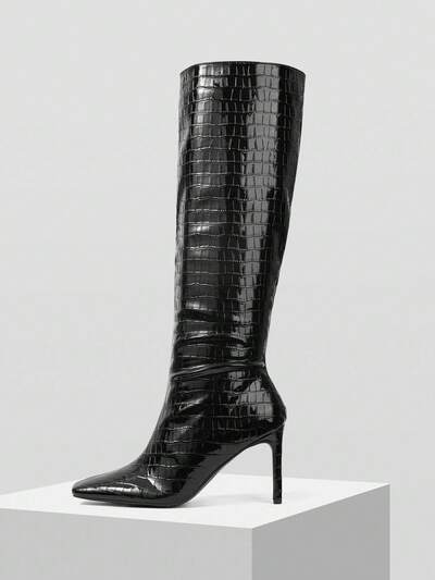 BOTAS SOBRE LA RODILLA DE TACÓN GRUESO Y PUNTA FINA DE MODA, ADECUADAS PARA CITAS Y FIESTAS-60%