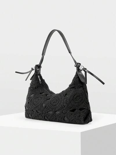 Una bolsa de hombro elegante y minimalista con un delicado colgante de metal es adecuada para ir al trabajo y de compras.PENDIENTES ARO HUECO CON FLOR