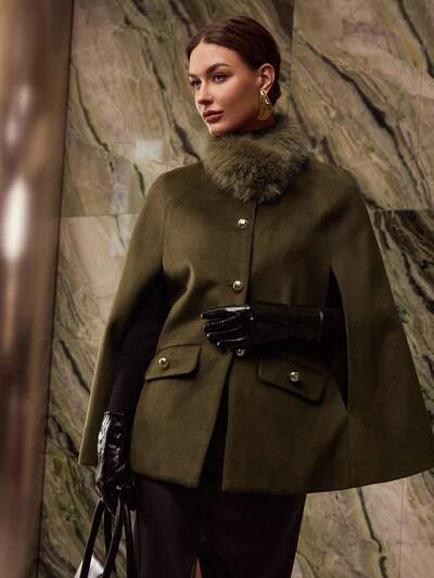 ABRIGO DE MUJER CON CUELLO DE PIEL SINTÉTICA, OTOÑO/INVIERNO-62%