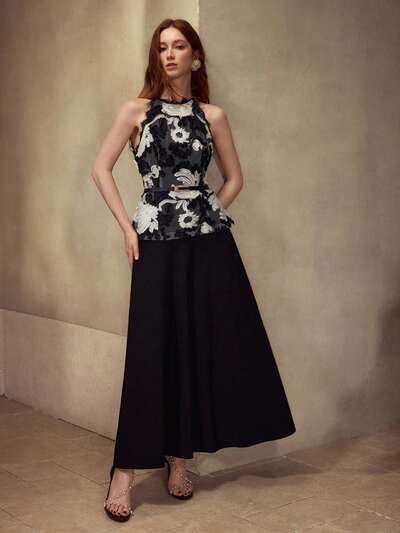 ROBE SANS MANCHES POUR FEMMES AVEC BRODERIE FLORALE NOIR ET BLANC POLYVALENTE-23%