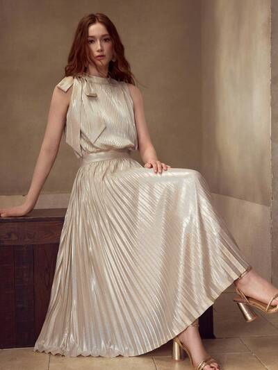ROBE DE LUXE BRILLANTE, ÉLÉGANTE ET AJUSTÉE POUR FEMMES, SANS MANCHES, AVEC NŒUD DÉCORATIF ET PLISSÉE-23%