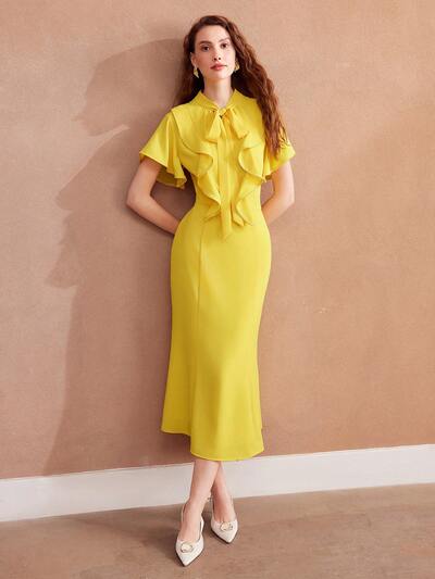 Robe Pour Femme Avec Nœud À La Cravate Tissée Et Garniture À Volants-23%