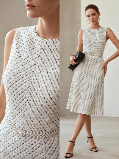 ROBE FEMME MINIMALISTE SANS MANCHES MI-LONGUE AVEC CEINTURE-27%