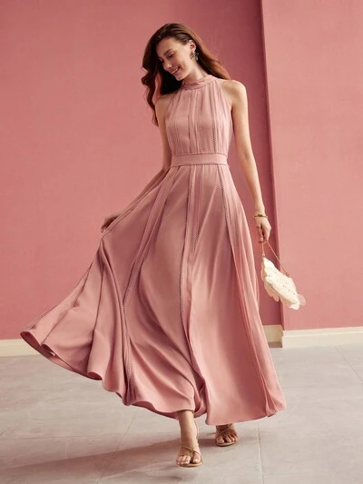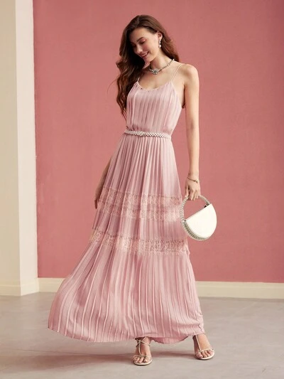 ROBE CAMISOLE PLISSÉE DRAPÉE EN DENTELLE CONTRASTÉE, TENUE POUR LA SAINT-VALENTIN-23%