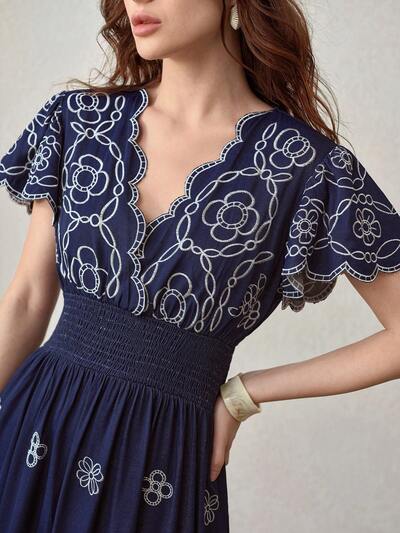 ROBE À VOLANTS AVEC OURLET BRODÉ D'ŒILLETS-23%