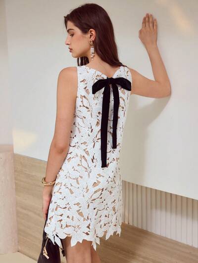 ROBE CEINTURÉE À POIS ÉLÉGANTE EN DENTELLE-26%