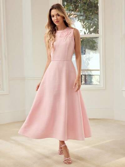 ROBE ÉLÉGANTE SANS MANCHES AVEC NŒUD, LONGUEUR MI-LONGUE, CONVIENT POUR LES SORTIES PRINTEMPS/ÉTÉ-28%