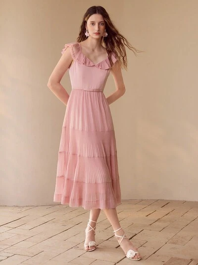 Robe Tissée À Panneau Plissé Et Col Licou Croisé Pour Femme-38%