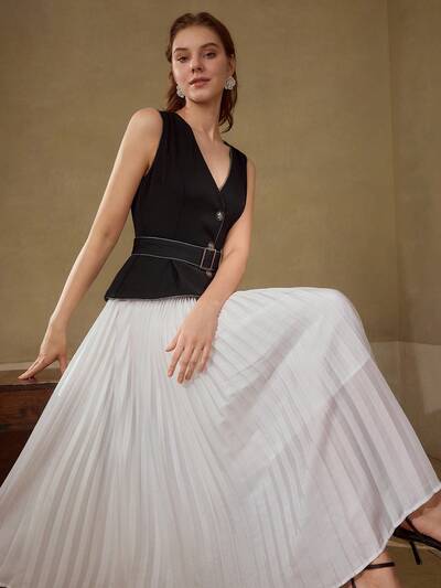 Robe ligne A taille cintrée avec plis plissés-34%