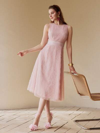 ROBE DE SOIRÉE, DE COCKTAIL, DE MARIAGE EN DENTELLE PLISSÉE POUR FEMMES PRINTEMPS/ÉTÉ