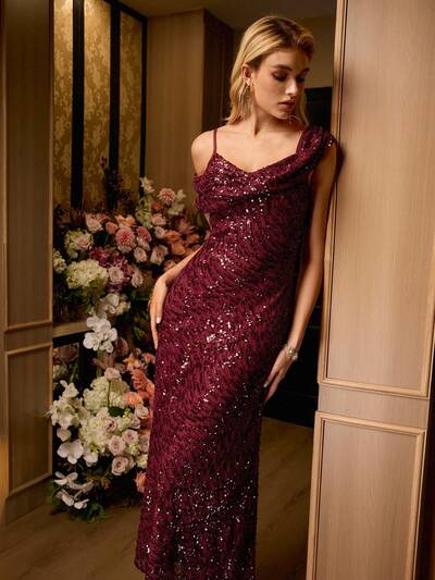 Robe sirène à épaule asymétrique et ourlet à sequins