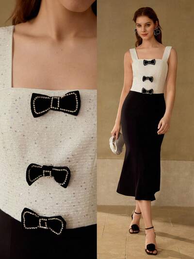 Robe mi-longue pour femmes à col V sans manches avec design de bordure contrastée, printemps/été-38%