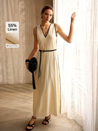 ROBE LONGUE SANS MANCHES DESIGN MINIMALISTE COL EN U POUR FEMMES-53%