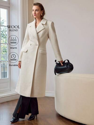 MANTEAU TEXTURÉ À DOUBLE BOUTONNAGE AVEC FAUSSE FOURRURE AU COL CHÂLE POUR FEMMES, NOUVELLE ARRIVÉE AUTOMNE/HIVER-53%
