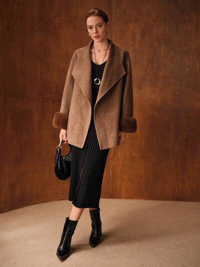 Manteau à col V, manches longues, en fausse fourrure pour l'automne et l'hiver-37%