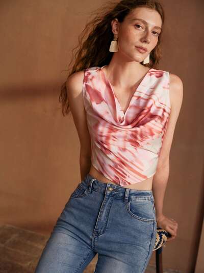 Top a canottiera con collo a imbuto e stampa Tintura a nodi-54%
