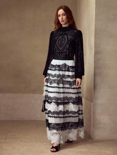 MOTF STUDIO Abito con volant in pizzo a contrasto-32%