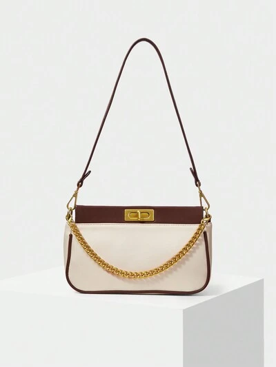 Borsa a tracolla con catena a blocchi di colore per donne-61%
