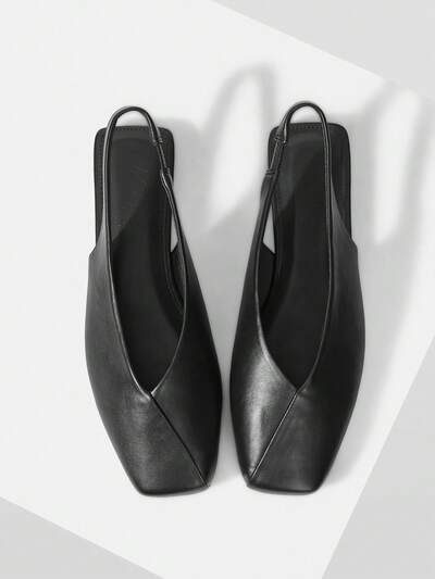 Scarpe da donna nuove, stile retrò europeo e americano, in pelle PU, con taglio a V e punta quadrata, suola piatta, sandali slingback, neri, versatili e casual, slip-on, leggeri, comodi, semplici ed eleganti, scarpe di alta qualità