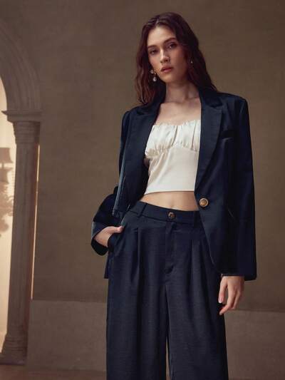 Blazer elegante da donna in satin jacquard con design strutturato e scollo a V minimalista-40%