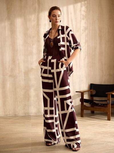 Pantaloni comodi in lino stampato da donna, primavera/estate-23%