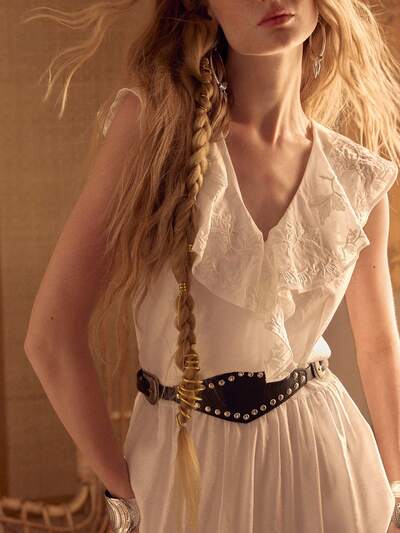 MOTF STUDIO Abito lungo in lino tencel ricamato con cintura, primavera/estate per donna-32%