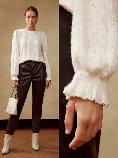 スパンコール フレアスリーブ レーストリム ブラウス-32%