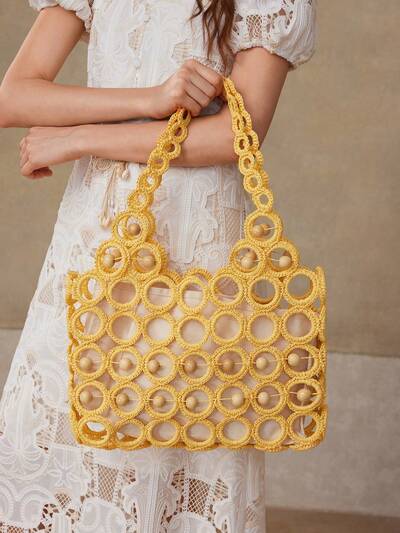 レディースリゾート ラインストーン装飾ストローショルダーバッグ-11%