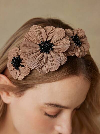 フラワーデコレーション つの広いつばのヘアバンド-15%