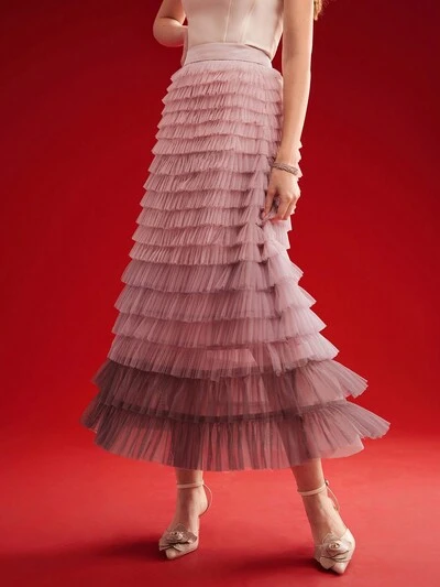 スカート レイヤーフリル メッシュ 素材:ウーブン 編み スカート-23%