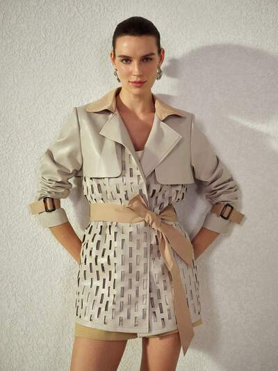 レディース ファッショナブル ホロウアウト コントラストカラーブロック PU パッチワーク ブレザー-59%