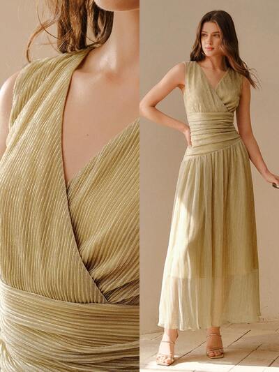 Vネック ロマンチック フリル プリーツ ドレス、春夏のデートに最適-23%