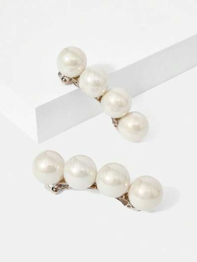 2個 フォーマルパール フレンチクリップヘアクリップ クロウクリップ ヘアクロウ ヘアバレット-15%