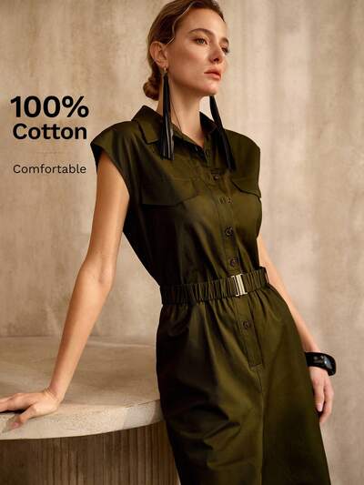 100%コットン ノースリーブ ベルト付きジャンプスーツ、ヴィンテージスタイル-42%