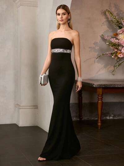 MOTF Soiréza ウィメンズ ストラップレス フィッテッド マーメイド イブニングドレス、胸下にラインストーンデコレーションバンド付き、ナチュラルフロアレングスマーメイドヘム - ウェディング、ガラディナー、授賞式、フォーマルレセプションに最適-26%