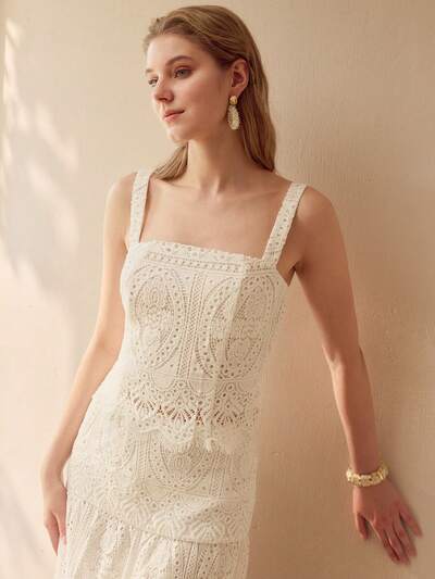 女性用ギピュールレース ロマンチック ホロー 刺繍スカート-67%