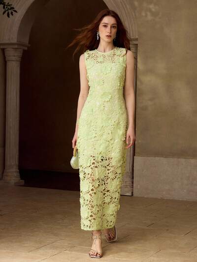女性用エレガントなメッシュ刺繍Aラインミディドレス、様々なシーンやデートに適しています-59%