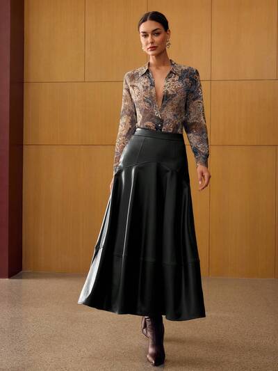 女性用 秋冬 ハイウエスト PUレザー フレアスカート-62%