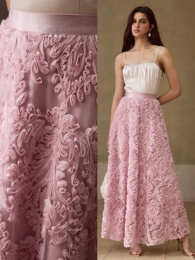 女性用 夏ロマンチック コントラストレースメッシュ アンブレラヘム ロングストラップドレス-63%
