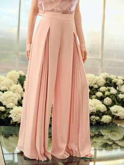 벨트 장착 솔리드 폴드 플리츠 와이드 레그 팬츠-30%