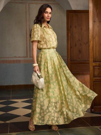 ZEYLAH 허리 잡힌 플레어드 컷아웃 엘레강트 롱 스커트, 봄과 여름용-57%