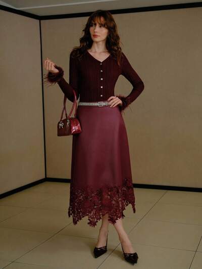 ZEYLAH 가을용 콘트라스트 레이스 플레어 레그 팬츠-25%