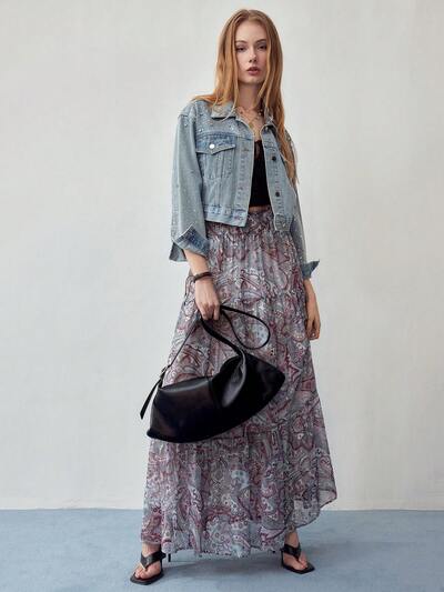 MOTF STUDIO 페이즐리 프린트 플로우이 러플 헴 스커트-25%