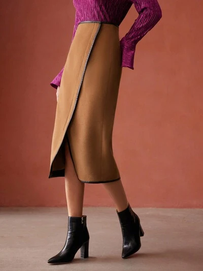 대비되는 PU 가죽 버튼 디테일 스커트-25%